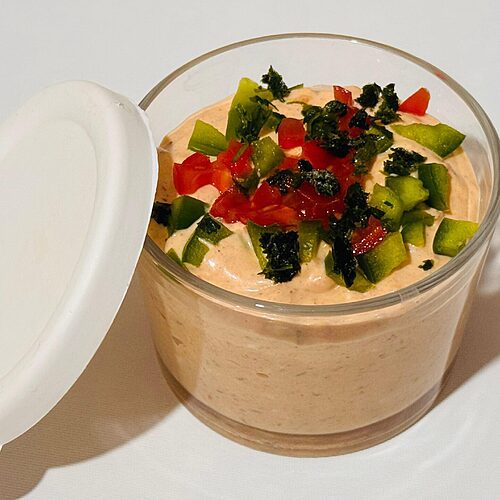 Once transferred to your favorite serving bowl, garnish to taste and pair with tortilla chips, crackers, biscuits or homemade bread. As a fun and healthier option, pair this tasty dip with different raw veggie sticks, it will brighten up your table; adding texture and color.