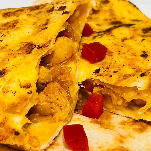 Fajita style chicken quesadillas- A bundle of color, joy and flavor!