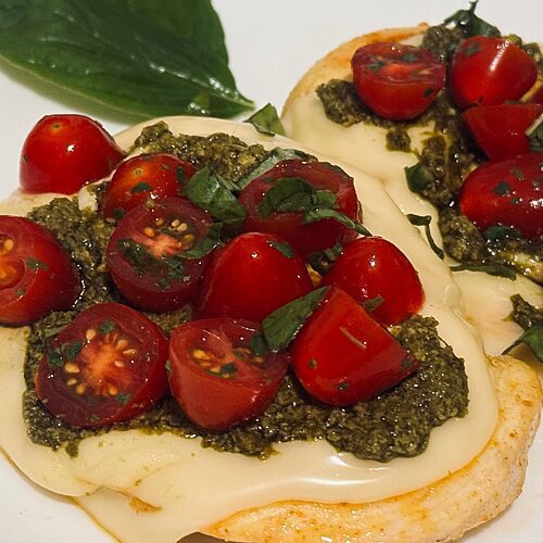 This is one of my favorite Italian inspired dishes; Margherita Grilled Chicken. tender chicken breasts, topped with gooey fresh Mozzarella cheese, pesto, cherry tomatoes and basil.