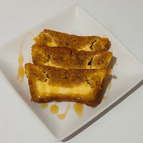 Serve this Fall baked delicacy either warm or at room temperature, plain o sliced. It pairs wonderfully with a scoop of whipped cream, caramel, or Vanilla ice cream. To dive into a real Autumn experience, serve with a nice warm beverage, such as; coffee, pumpkin spiced latte or tea.