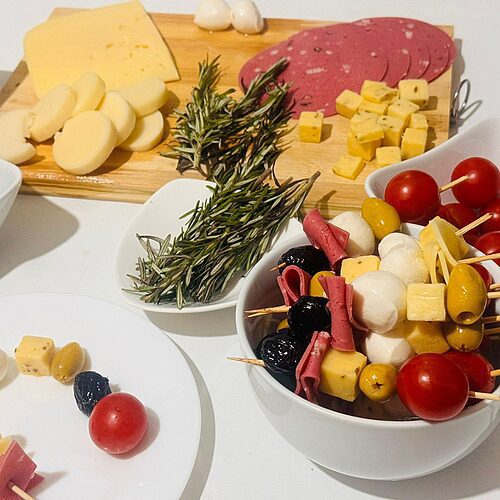 Get all your antipasto ingredients ready. Prepare any ingredients that need to be chopped, sliced, or cubed.