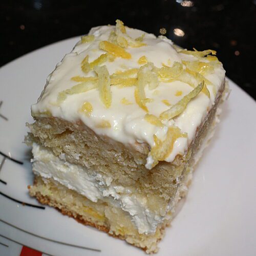 - Pair with Whipped Cream: Serve each slice with a dollop of freshly whipped cream on the side. The creamy topping complements the tangy lemon flavor of the cake beautifully.