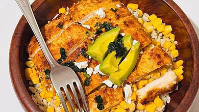 Easy, Vibrant, and Satisfying Street Corn Chicken Rice Bowl – Fluffy lime infused rice, charred corn, and well marinated chicken…