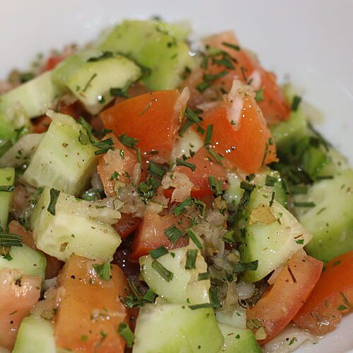 Try our Tomato Cucumber Salad for a taste of summer. Juicy tomatoes and crunchy cucumbers mix with sharp onions and fresh parsley. The dressing of olive oil and vinegar is simple and delicious. This salad is perfect for a light meal or a party dish. Close your eyes and enjoy the flavors of summer in every bite.