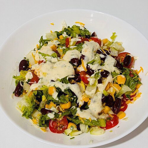 Finally, pour the creamy salad dressing on the veggies, mix until well combined. Enjoy!