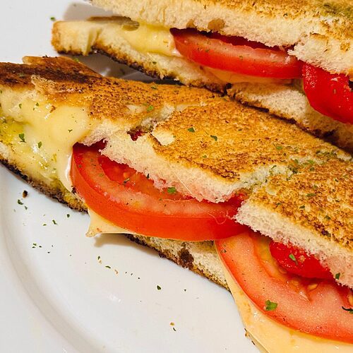 Transfer the grilled sandwiches to a plate, slice in half and enjoy immediately.